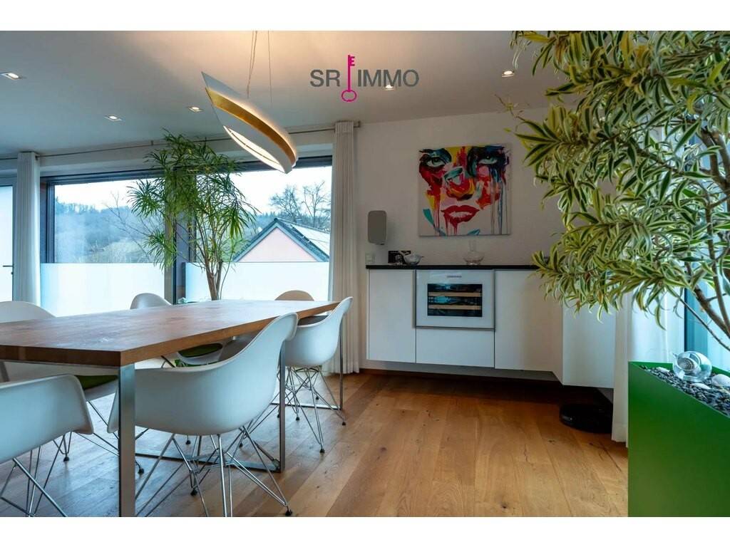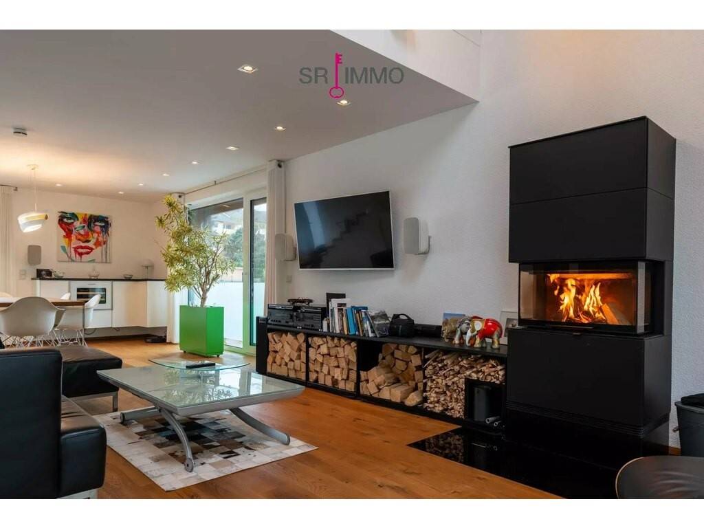Architektonisch überzeugt das Haus durch eine offene Galerie, die von unten bis oben sichtbar ist. Die Küche, welche exklusiv vom Schreiner gefertigt wurde, punktet mit hochwertigen Einbaugeräten und einer durchaus eleganten Optik. Ein Kamin im offenen Wohn- und Essbereich bildet das gemütliche Herz des Hauses, in dem Familie und Gäste zusammenkommen. Durchgängig warme Eicheparkettböden verleihen dem Wohnbereich eine zeitlose Eleganz und eine angenehme Haptik unter den Füßen.
