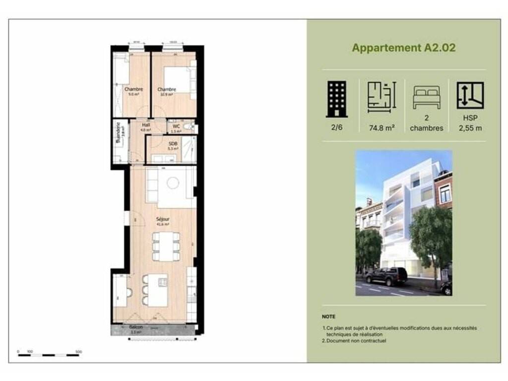 Au 2ième étage, bel appartement de 87 m²