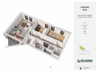 L'appartement D.0 se trouve au rez-de-chaussée et a une surface habitable de 82,35 m².