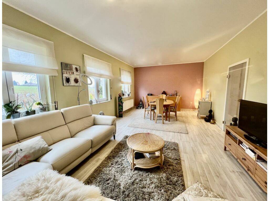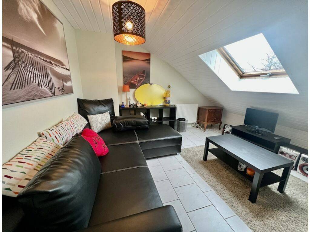 Sehr helles und geräumiges Wohnzimmer (+-25m2) mit offenem Kamin, 1 Schlafzimmer (+-16m2), Badezimmer (+-12m2)
