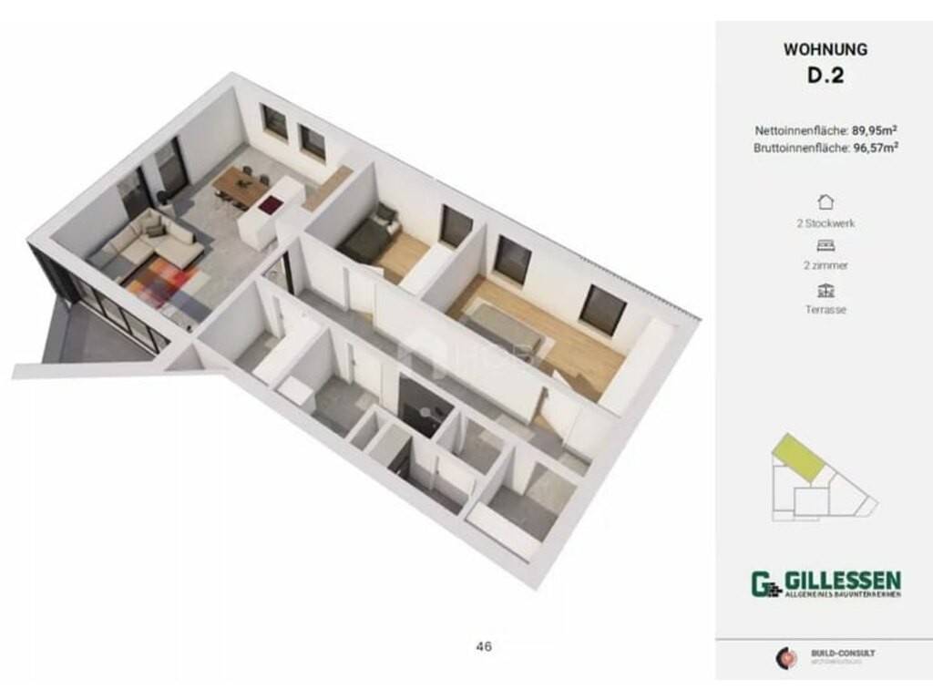 L'appartement D.2 se trouve au deuxième étage et a une surface habitable de 86,04 m².