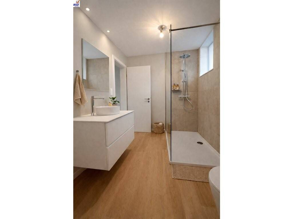 A vendre à Martelange, Impasse des Bouchers n°2A, spacieuse maison d'habitation d'une superficie totale de 180 m² dont 133 m² habitables, 4 chambres, 1 salle de bains et 1 salle de douche, grand séjour/cuisine ouverte avec cuisine équipée complète ( appareils Siemens) avec îlot central. La pièce de vie est traversante et bien lumineuse avec ouverture vers le jardin orienté sud-ouest.\nMaison entièrement désossée et reconstruite à neuf avec des matériaux prémium. Système de chauffage au sol par pompe à chaleur Vaillant, isolation complète du bâtiment par l'intérieur :\nPEB A. Châssis double vitrage +protection solaire + ventilation intégrée. Installation électrique conforme + raccordement internet.\nSituée dans une impasse, calme, au centre de Martelange, à proximité immédiate des commerces, écoles, transports en commun.\nSuperbe aménagement intérieur.\nA VOIR ABSOLUMENT - Prix : 386.000 €\n