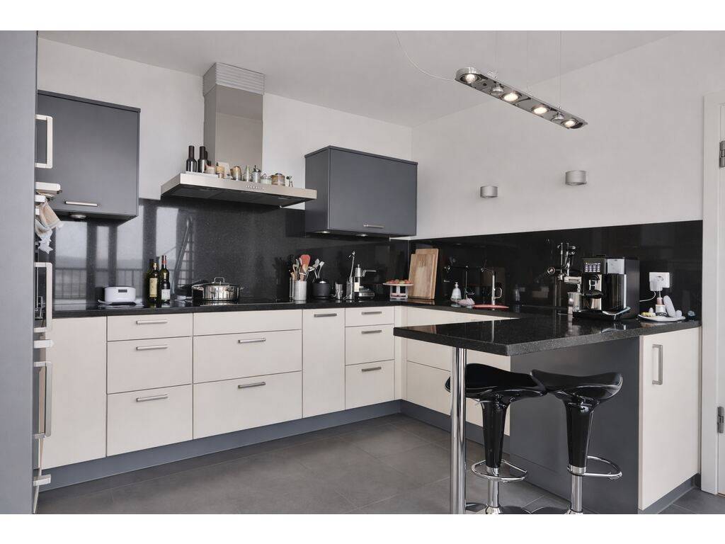 Die helle, voll ausgestattete Küche bietet ebenfalls direkten Zugang zur Terrasse.