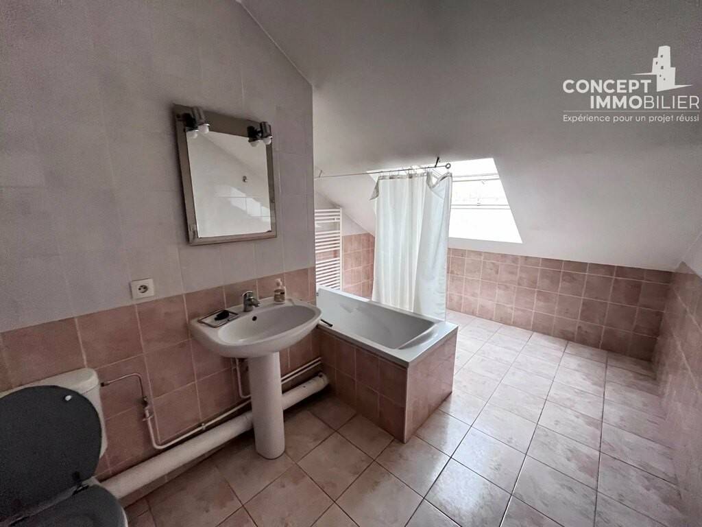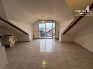 - Pièce principale spacieuse et mansardée, très lumineuse grâce à sa grande baie vitrée donnant accès à un balcon avec vue dégagée.