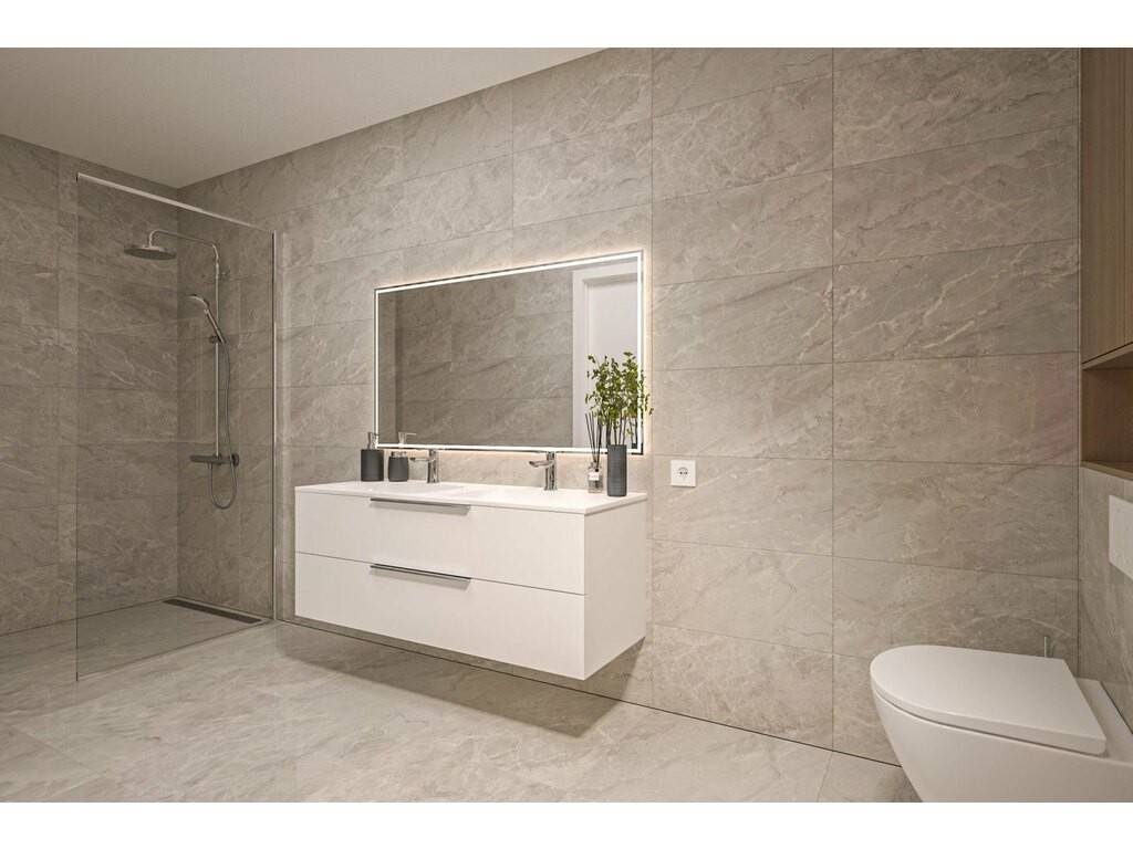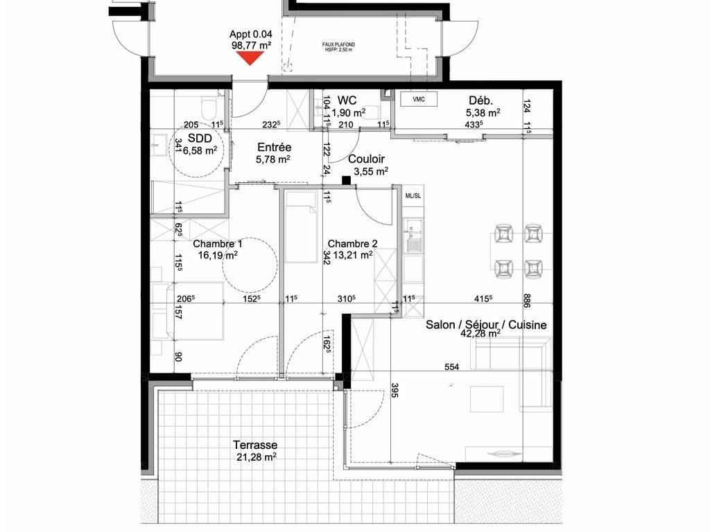 - Eine Eingangshalle - Einem Wohn-/Esszimmer von 40 m² mit Zugang zu einer Terrasse von 21 m². - Einem Abstellraum - Zwei Schlafzimmer - Ein Badezimmer - Ein separates WC