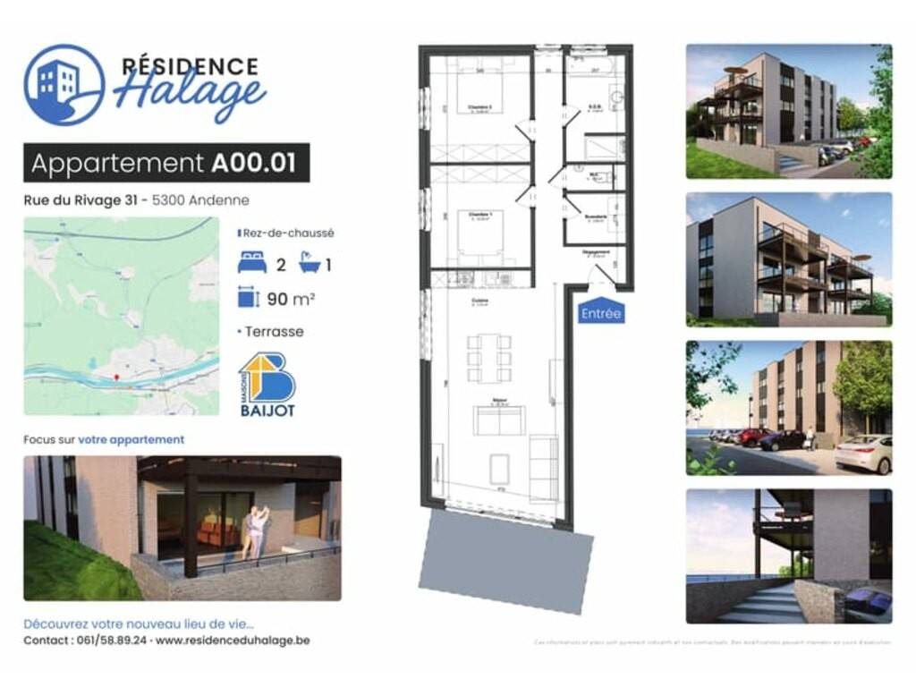 Situé Rue du Rivage, ce projet immobilier offre un lieu de vie idéalement situé, mêlant l’énergie urbaine d’Andenne et la sérénité des rives de la Meuse.
