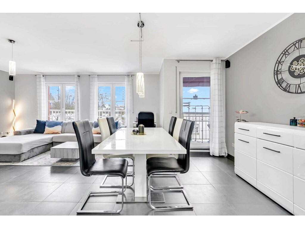 - Salon et salle à manger avec accès au balcon à l'arrière du bâtiment,