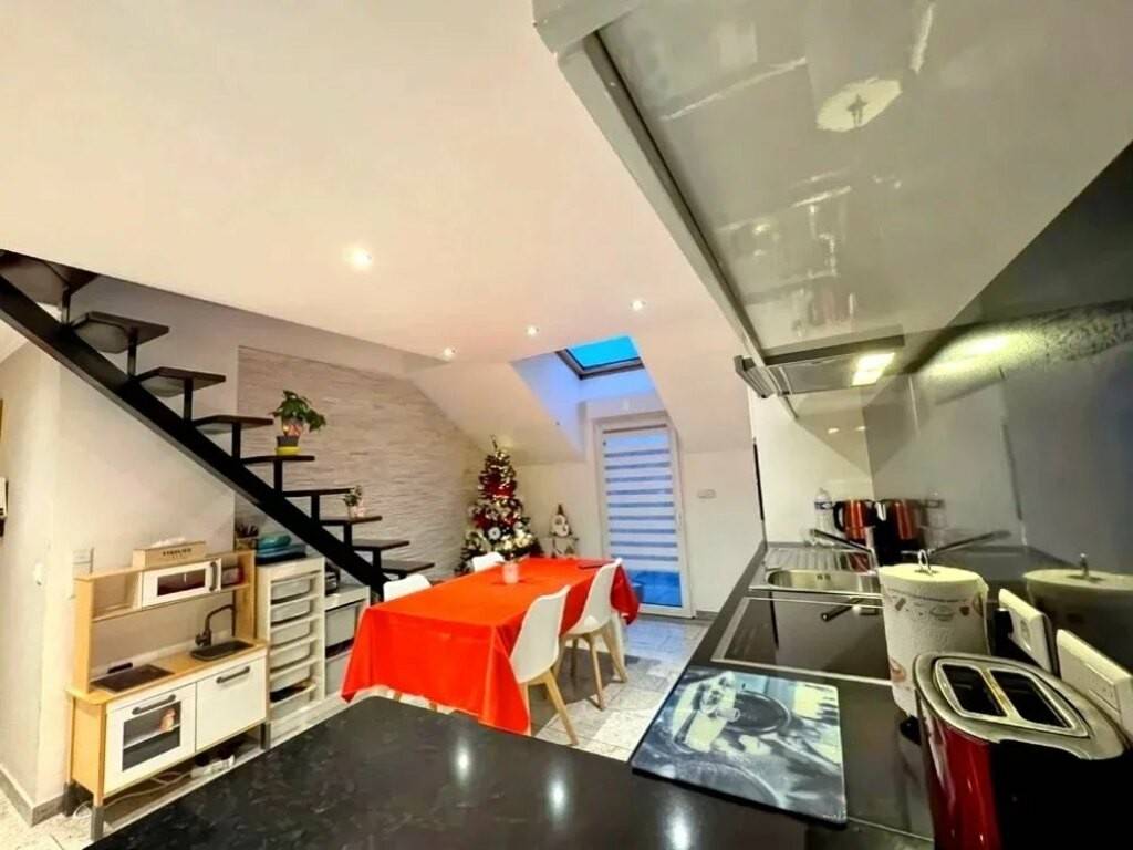Cet appartement d'une surface au sol de 71m² se compose de 2 chambres, un grenier aménagé, un salon ouvert sur une salle à manger et d'une cuisine équipée ainsi que d'une salle de bain avec sa buanderie.