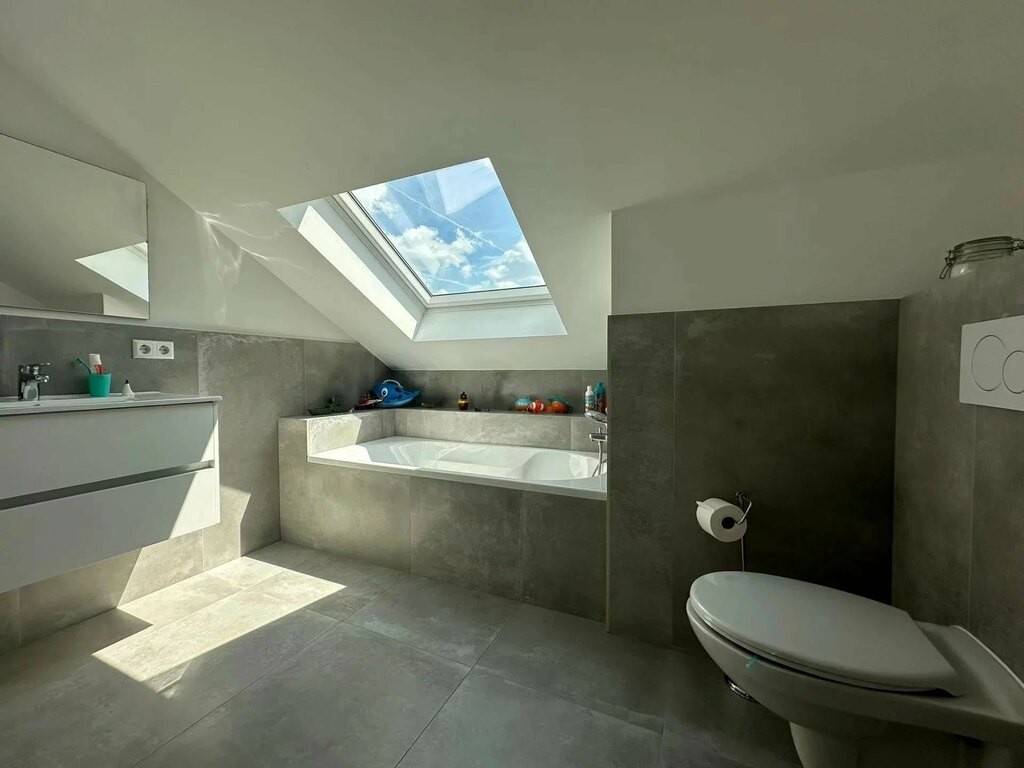 À l’étage, la suite parentale séduit par son vaste dressing et sa salle de douche privative. Une deuxième grande chambre ainsi qu’une salle de douche avec WC complètent ce niveau. Le dernier étage offre une salle de bain avec WC, un espace bureau inspirant et deux chambres supplémentaires.