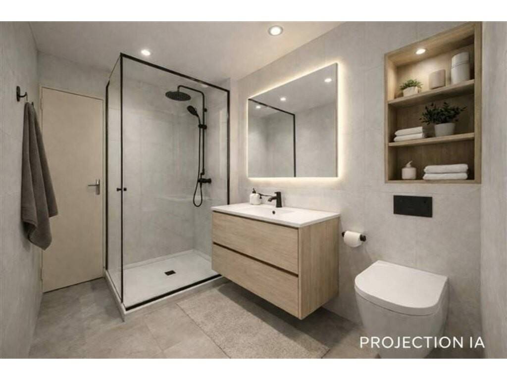 Situé au premier étage d’un immeuble résidentiel bien entretenu, ce bien à rafraîchir bénéficie déjà de quelques améliorations de confort, notamment des châssis en double vitrage PVC et des volets roulants électriques, garantissant luminosité et isolation thermique optimale.