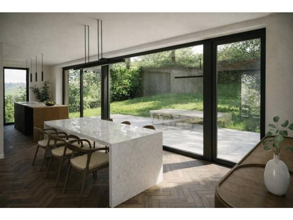 Rez-de-jardin : La pièce de vie est le cœur de la maison. Vaste séjour ouvert, baigné de lumière naturelle grâce aux grandes baies vitrées donnant sur le jardin. Ce niveau comprend également une chambre et une salle de douche (idéal pour un bureau ou une suite parentale).