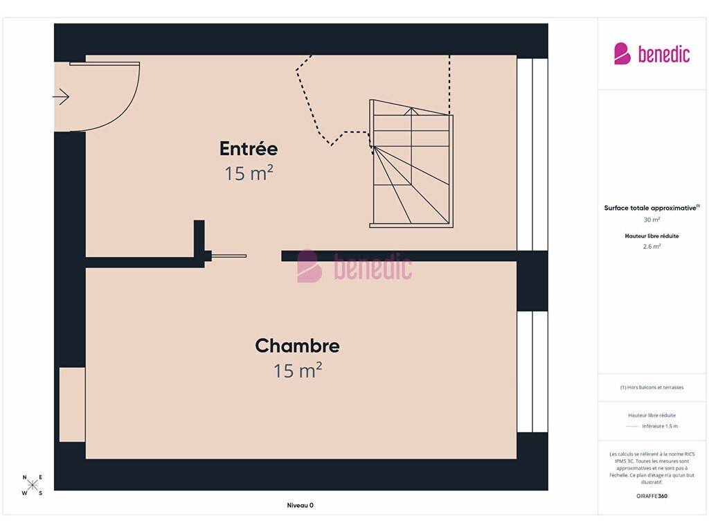 Composé d'une entrée avec un escalier qui vous permettra d'accéder à l'étage et une grande chambre de 28 m².