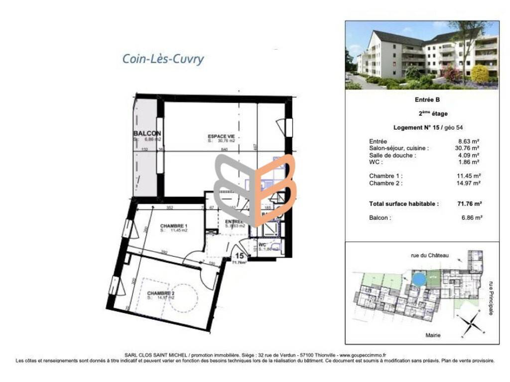 N’hésitez pas et venez découvrir ce nouveau programme neuf en plein cœur du village de Coin-Les-Cuvry. Idéalement situé sur l'Axe Luxembourg - Nancy, ce village bénéficie d'une facilité d'accès aux principaux axes routiers, d'une proximité avec l'aéroport régional et la gare 'Lorraine TGV'. Le récent développement de zones commerciales comme le Waves à Augny ou encore l'arrivée du géant Amazon à 5 min de la résidence rendent ce projet très attractif. Appartements du T2 au T3 disponibles dans une résidence de qualité et sécurisée.