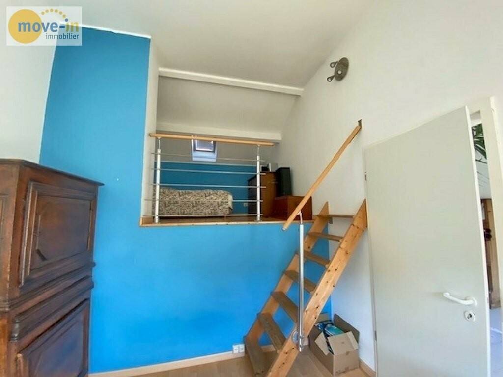 an entrance hall and a bright landing with access to a first terrace, 2 good-sized bedrooms, one with a mezzanine sleeping area, and on the mezzanine level there is a bathroom with bathtub and a built-in closet