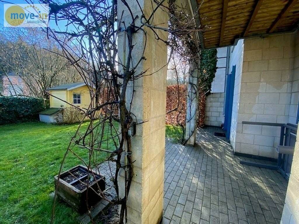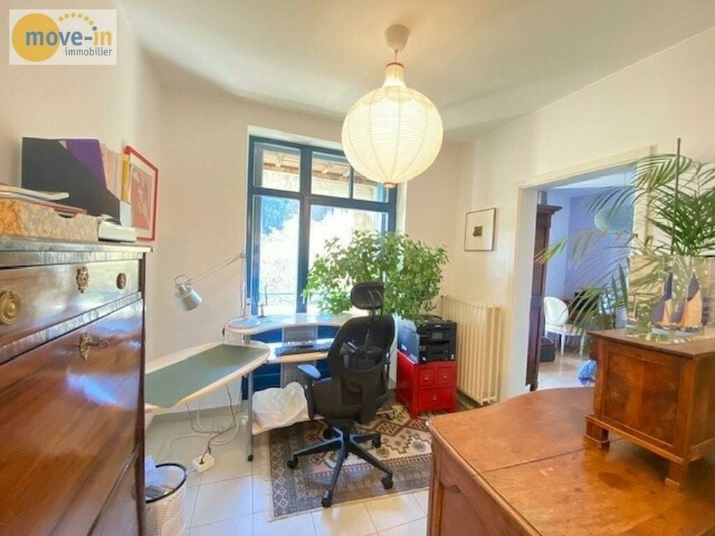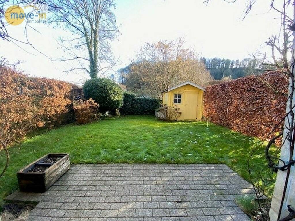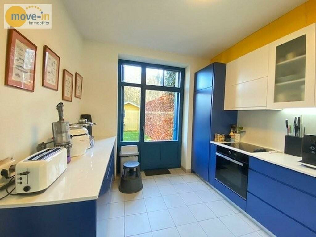 the second staircase leads to a pleasant living room and a large, newly equipped separate kitchen, both rooms giving access to a nice covered terrace and a medium-sized garden, facing south and not overlooked. The entire rear facade is surrounded by greenery with a view of the Limpertsberg forest and is not overlooked.