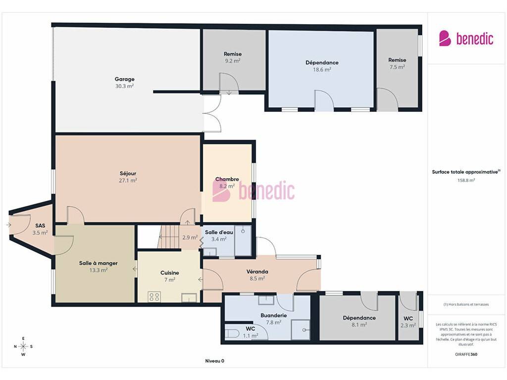Au rez-de-chaussée : une entrée, une cuisine indépendante, un salon, une salle à manger, une chambre, une salle d'eau, une véranda ainsi qu'une buanderie / chaufferie.