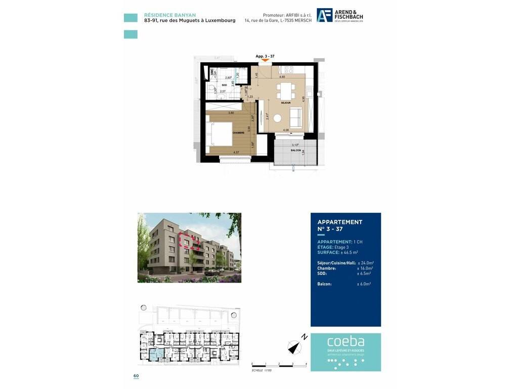 L'appartement 3-37 de 46.6m2 se compose comme suit :