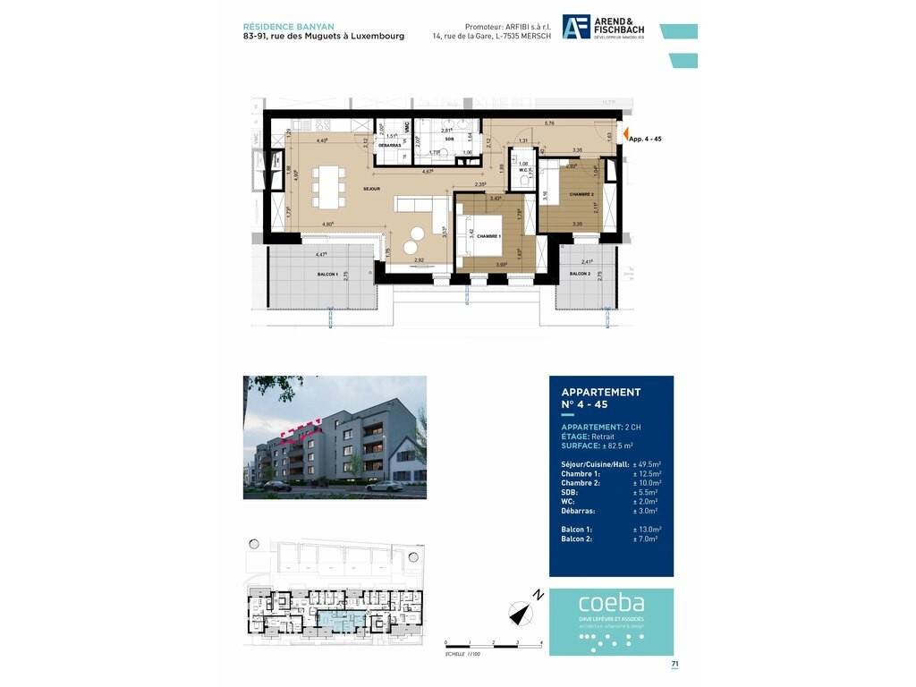 L'appartement 4-45 de 82.70m2 se compose comme suit :