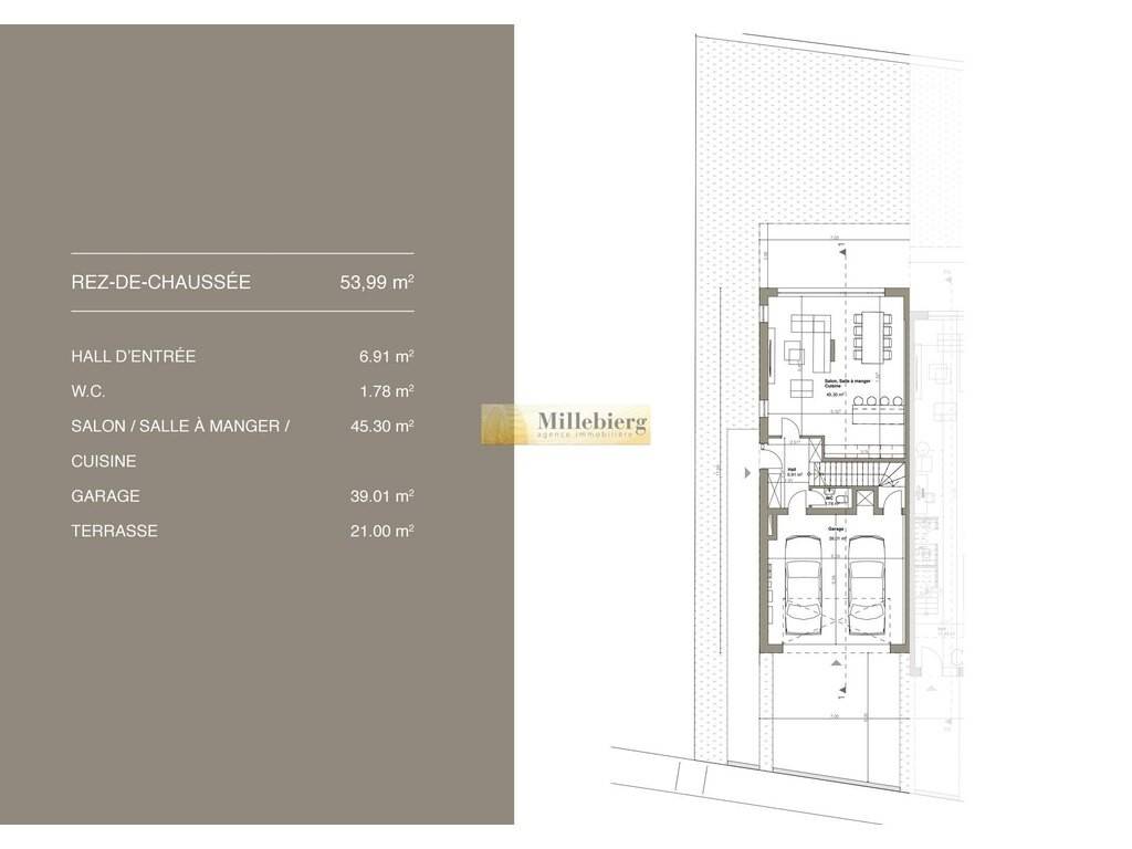 Nouveau projet situé au calme, à 1 km des Thermes et du parc, et à 600 m du centre. Maison d'une surface habitable de 149 m², complétée par 87 m² de garages et deux terrasses de 21 m² chacune.
