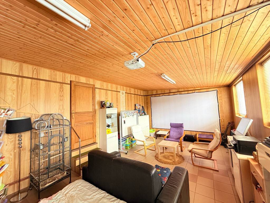 Au rez-de-chaussée : une entrée accueillante, une cuisine équipée et fonctionnelle de 7,85 m², un salon-séjour lumineux de 29 m² avec accès direct à une véranda, ainsi qu’une grande pièce polyvalente de 32,74 m² actuellement aménagée en salle cinéma avec vidéoprojecteur, pouvant facilement devenir un second salon-séjour , un WC séparé complète ce niveau .