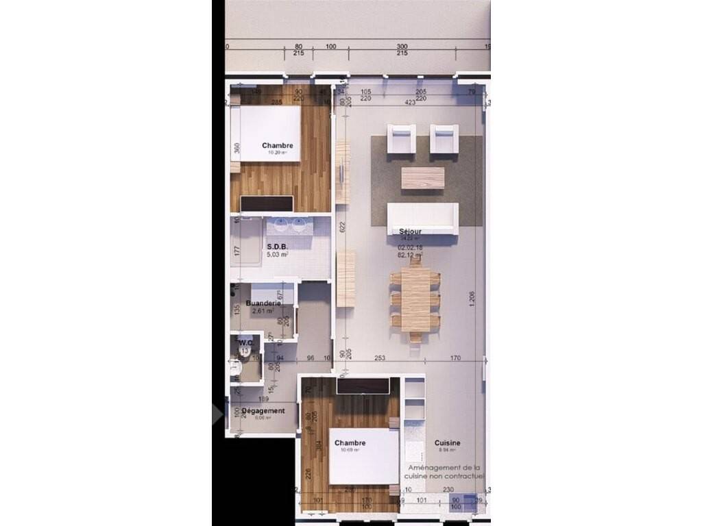 Situé au deuxième étage, ce bien propose un spacieux séjour avec cuisine ouverte, deux chambres, une salle de douche moderne, un WC séparé et une buanderie fonctionnelle. Côté extérieur, un agréable balcon orienté ouest prolonge l’espace de vie, idéale pour profiter des beaux jours.