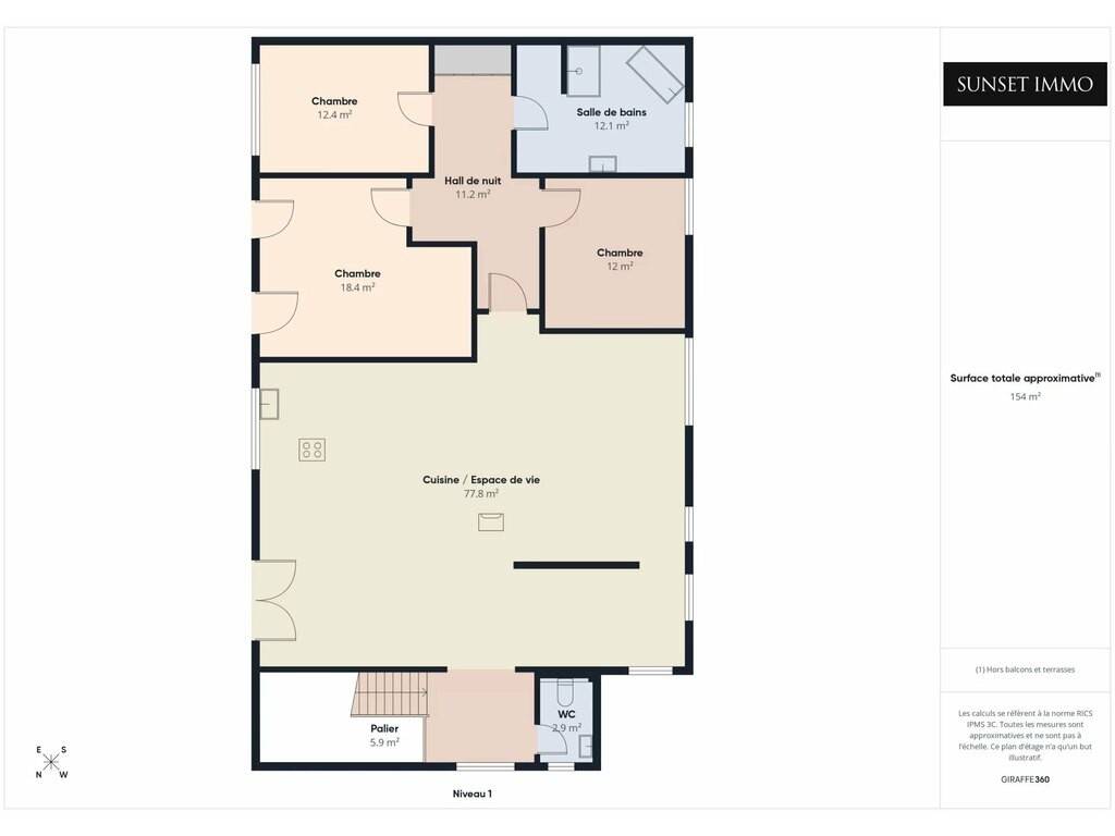 The apartment stands out for its harmonious layout and its large, bright living area of 77.8 sqm, creating a welcoming and convivial space for everyday living.