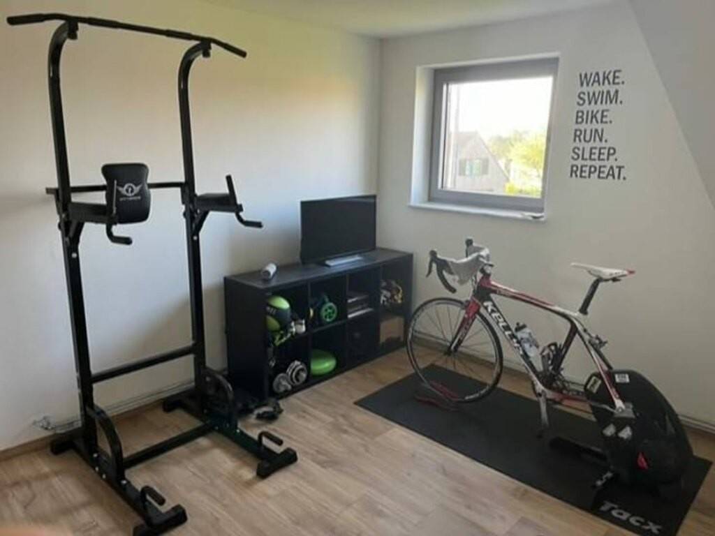 REZ: wc séparé, bureau, living, cuisine équipée ouverte avec coin repas, vestiaire.