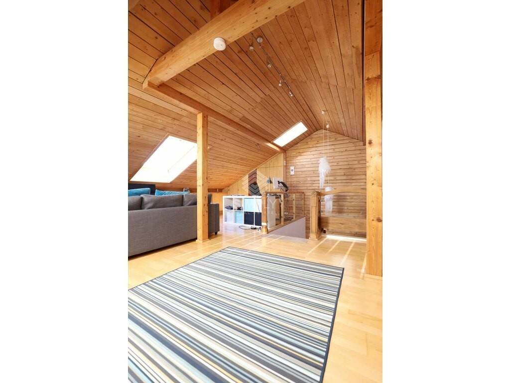 With a total surface area of approx. 290 m², including about 210 m² of living space, it offers generous volumes and a bright, welcoming atmosphere. The spacious living room, bathed in natural light, opens directly onto a sunny terrace and a landscaped garden – a true green haven of peace.