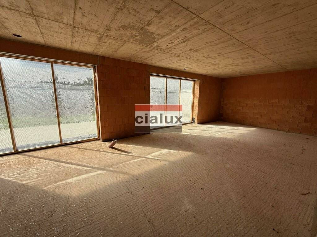 EN CONSTRUCTION LOT 14 : Maison jumelée comprennent au rez de chaussée un grand living avec cuisine ouverte ( ou indépendante avec salle à manger) donnant accès à la grande terrasse et au jardin orientés Sud-Ouest, bureau à l'entrée, WC séparé et débarras. Le double garage donne accès direct à l'habitation avec 2 stationnements se trouvant devant le garage. A l'étage se trouvent 4 chambres dont une parentale avec dressing et salle de Douche privative, 2ème salle de Bains. Les combles sont aménagés d'une buanderie, d'une salle technique avec chauffage, le restant de la surface est aménageable en option avec 2 chambres ou autre et salle de Douche.