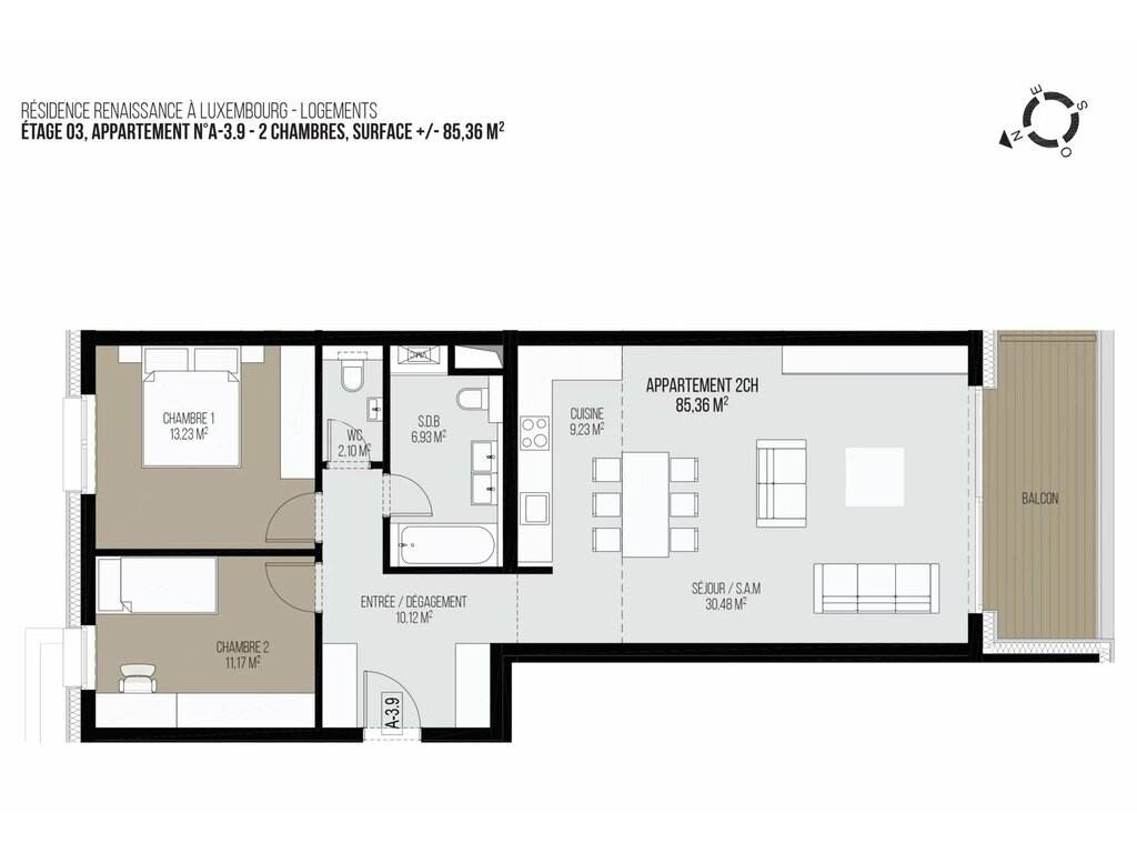 Espace Immo presents this new apartment for first-time buyers, located just a few steps from Place de l'Etoile in Luxembourg.
