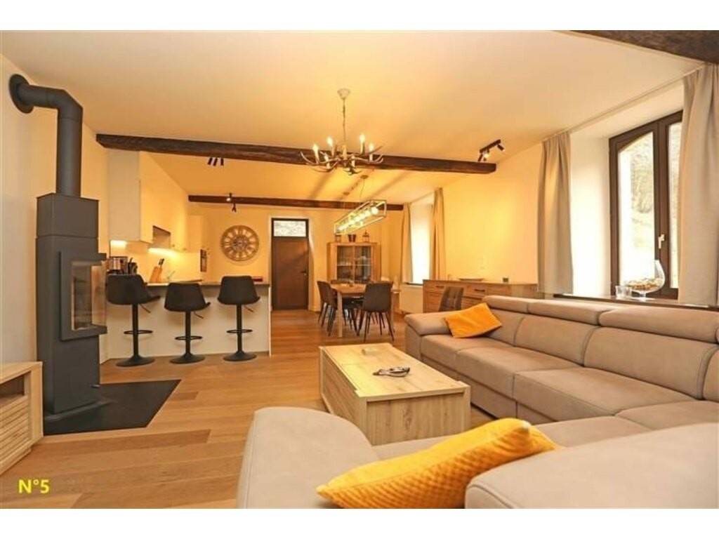 Construction en pierres de pays, toiture ardoises artificielles, châssis bois double-vitrage, chauffage central mazout, poêle à bois et à poêle à pellets, installations électriques indépendantes conformes, caméras de surveillance.