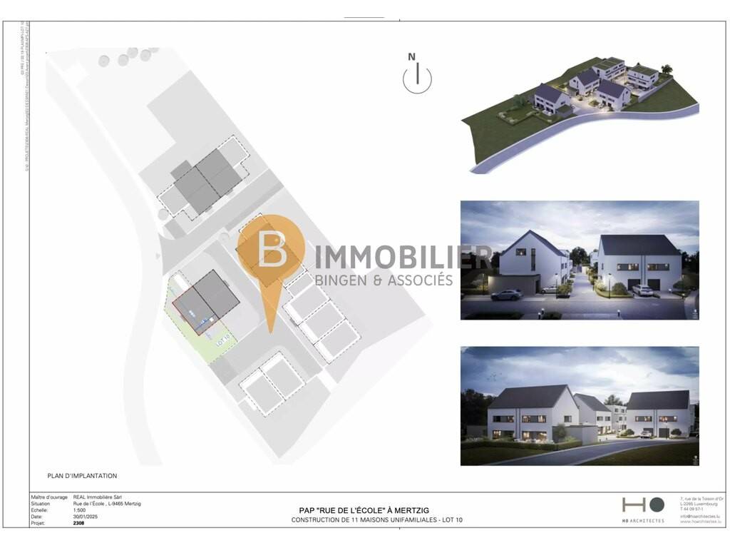 B IMMOBILIER a le plaisir de vous présenter ce nouveau projet de construction d'une maison jumelée, libre de 3 côtés, d'une surface totale de 174m², dont 135m² habitable, construit par notre partenaire REAL CONSTRUCTIONS SARL à Mertzig - rue de l'école.