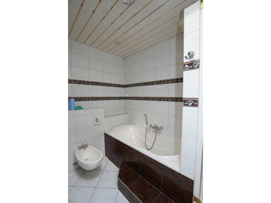 Hall, escalier, couloir, living avec cassette, cuisine équipée, buanderie, salle de bain avec meuble lavabo, bain, douche et wc, 2 chambre dont une spacieuse (qui pourrait d’ailleurs être utilisée comme autre pièce de vie,…) grâce à sa porte-fenêtre coulissante menant à la terrasse qui profite d’un bel emplacement ensoleillé.
