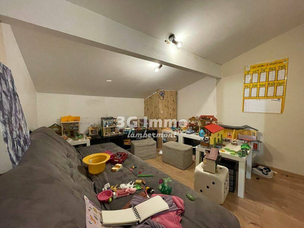 Sous combles (aménagés récemment) : 2 chambres (17 m² au sol et 22 m²), et une cinquième pièce (chambre enfant, salle de jeu...).
