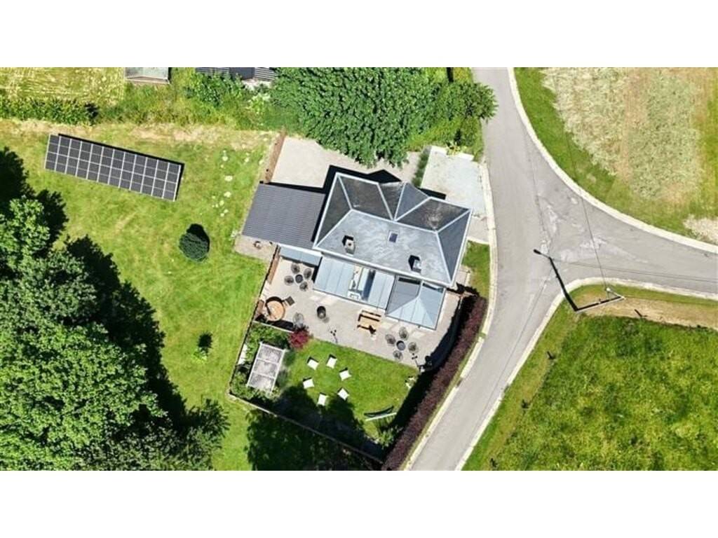 Construction 4 façades en pierres du pays, toiture en ardoises naturelles, bardage en ardoises naturelles sur 2 façades, chauffage central mazout, poêle à bois dans le salon, châssis pvc double vitrage, véranda aluminium double vitrage, 24 panneaux photovoltaïques d'une puissance totale de 9600 Wc, installation électrique conforme avec compteur bi horaire, tv et téléphone, raccordement au réseau d'égouttage, robot tondeuse.