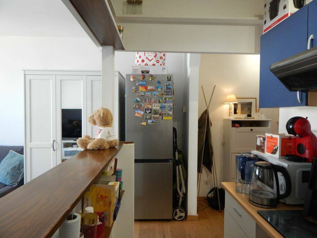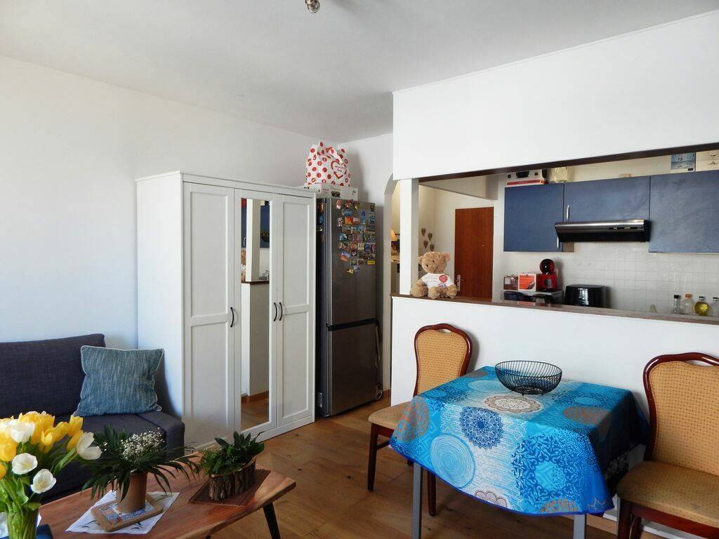 Le studio se compose d'une pièce de vie avec cuisine équipée ouverte, d'une salle de douche / WC avec emplacement pour machine à laver, et d'une cave au sous-sol.
