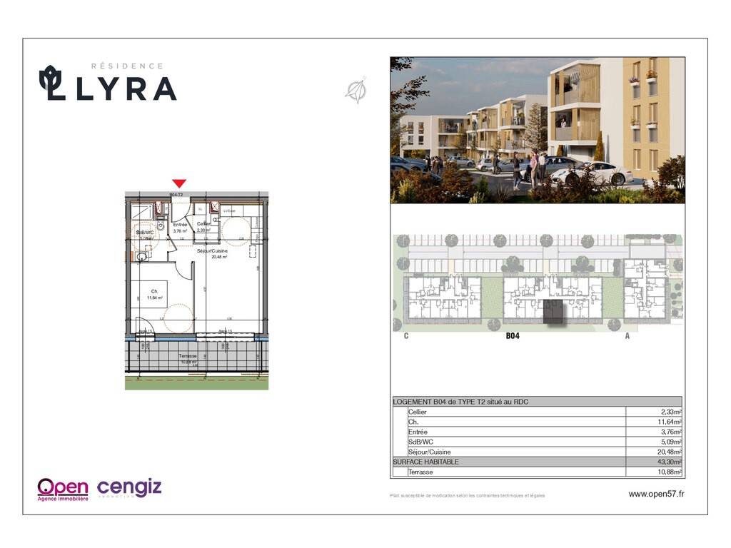 Découvrez le lot B4, un appartement de type F2 situé au rez-de-chaussée de la résidence. Il offre une surface habitable totale de 43,3 m2, complétée par une terrasse de 10,88 m2, parfaite pour profiter des beaux jours.