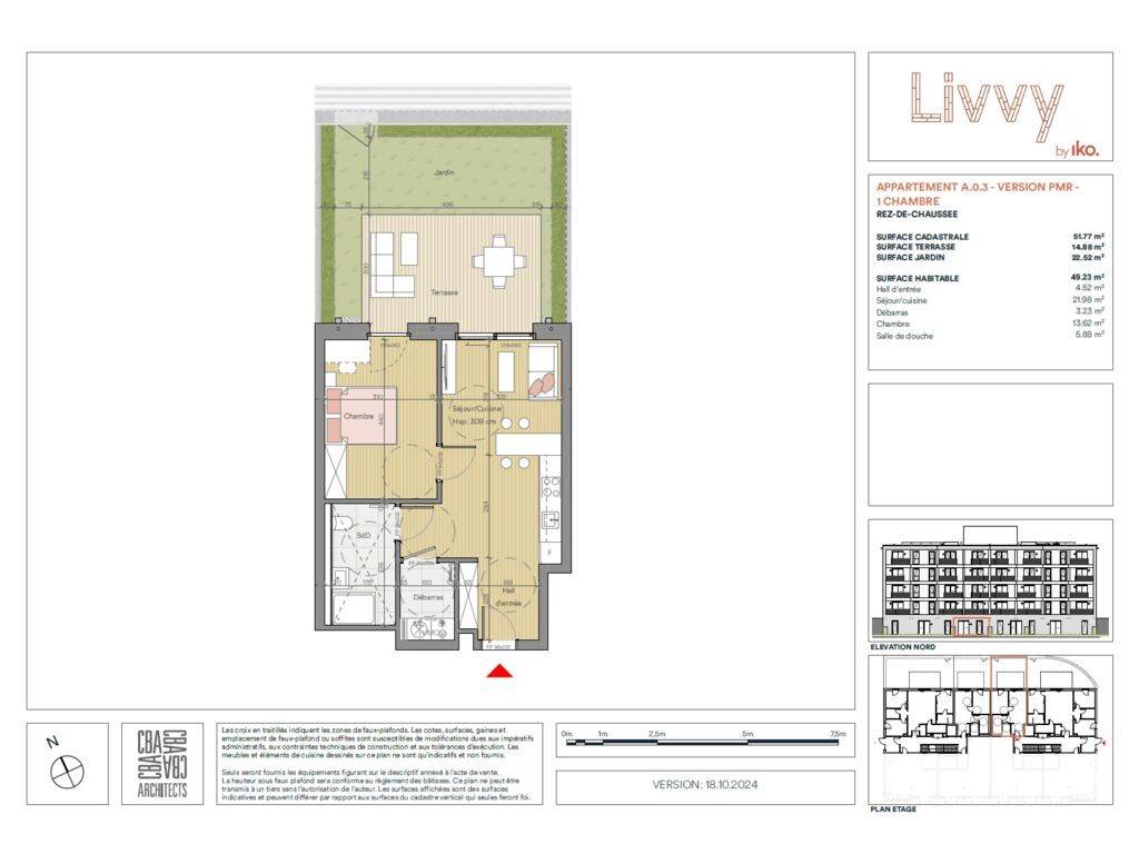Au sein de la résidence Livvy, IKO REAL ESTATE vous propose cet appartement 1 chambre neuf de 52.22 m² habitables situé au rez-de-chaussée, comprenant un séjour/cuisine, une salle de douche avec wc, une terrassse de 14.08 m² avec un jardin de 22,08 m², et une cave privative.