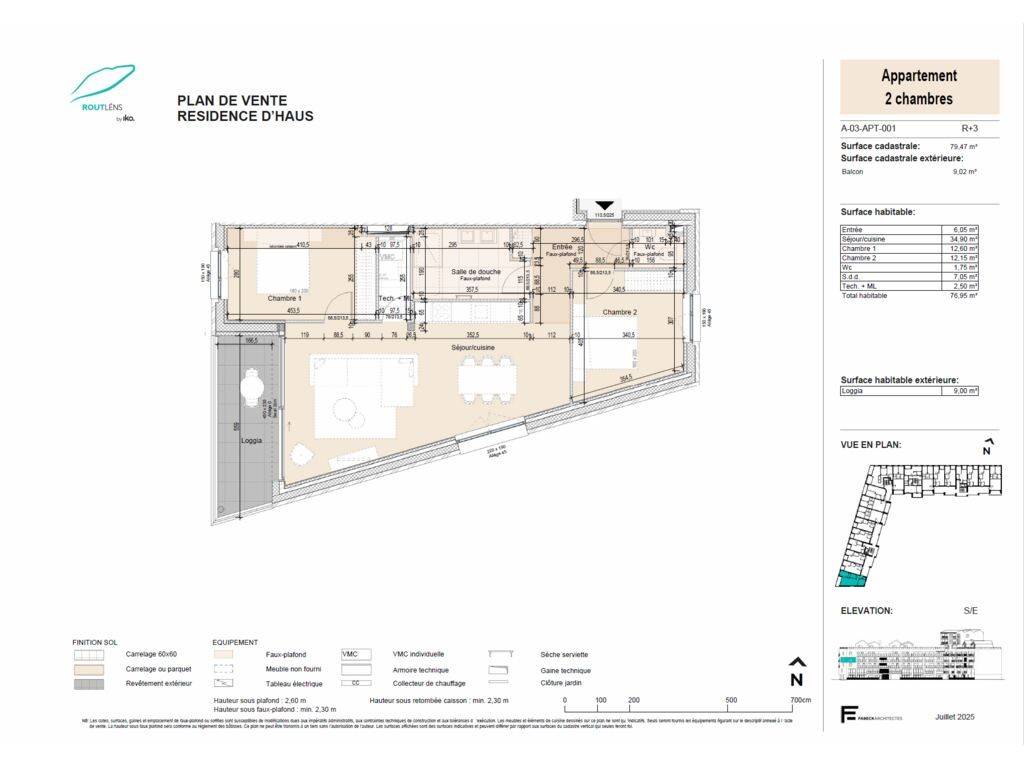 Au sein de la résidence D'Haus, IKO REAL ESTATE vous propose cet appartement 2 chambres neuf de 79,47 m² situé au troisième étage, comprenant un séjour/cuisine, une salle de douche avec wc séparé, une loggia de 9,02 m² et une cave privative.