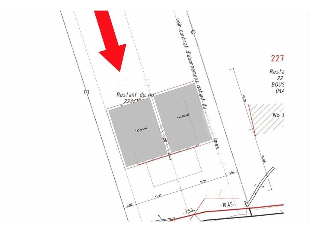 - La parcelle peut être morcellée en 2 terrains constructibles, pour la construction de 2 maisons jumelées (libres de 3 côtés).