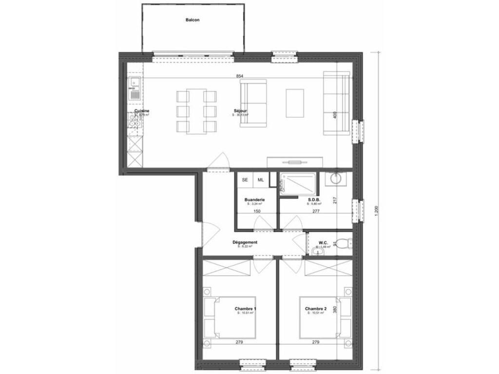 Il dispose d’un espace cuisine ouvert sur un séjour spacieux de 34 m², baigné de lumière, avec un accès direct à un balcon agréable pour profiter de l’extérieur en toute tranquillité.