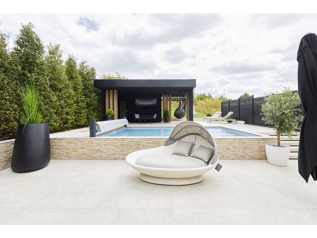 Bathed in natural light and offering generous volumes, this property impresses with its clean lines, refined finishes, and expansive floor-to-ceiling windows that provide unobstructed views of the surrounding greenery.