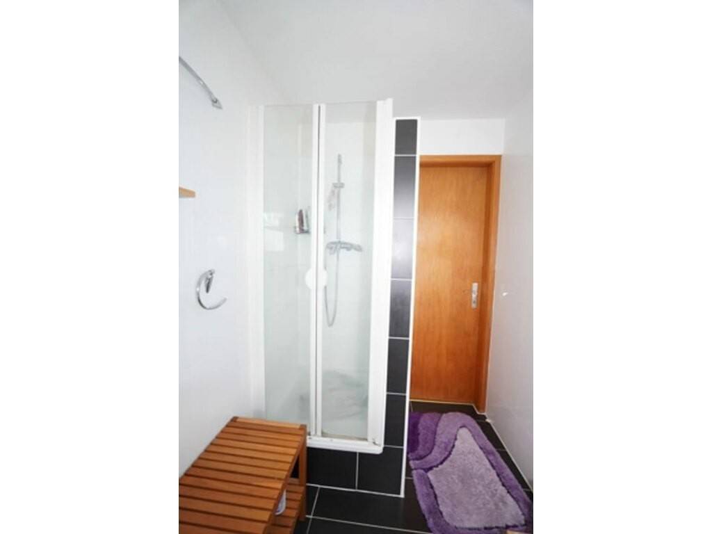 2° étage : palier avec kitchenette, une chambre à coucher spacieuse avec armoire encastrée, et salle de douche avec wc, douche et lavabo.