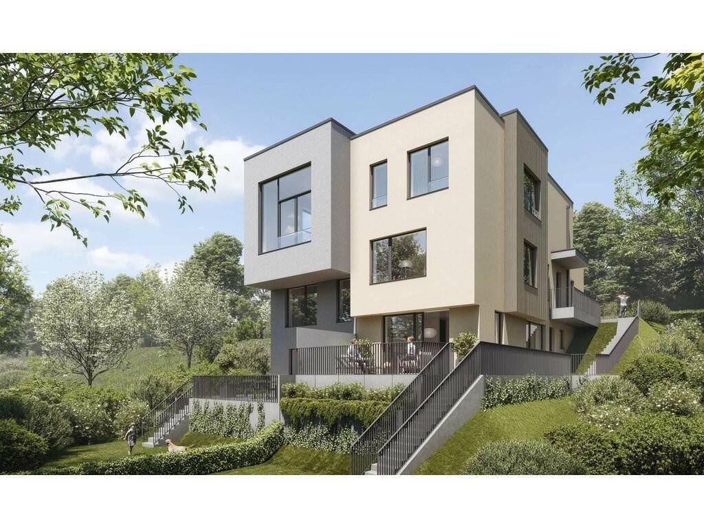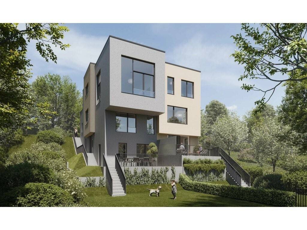 Au rez-de-jardin : un beau et grand séjour qui donne accès à une terrasse et un jardin. Une buanderie et un wc sont également prévus.