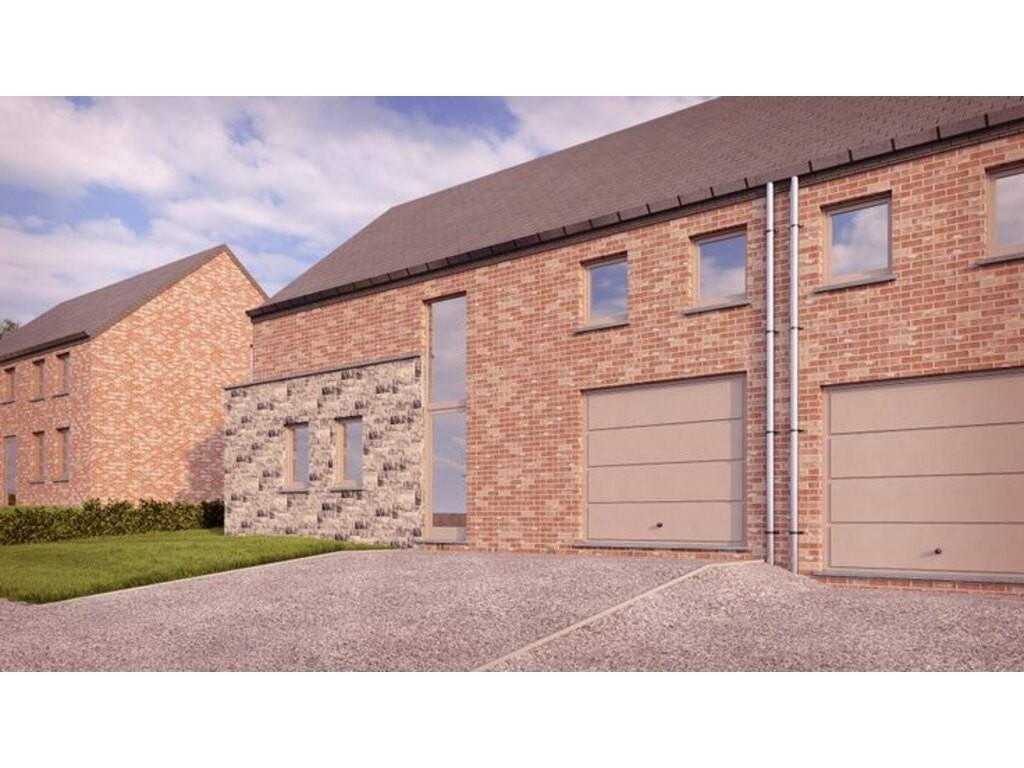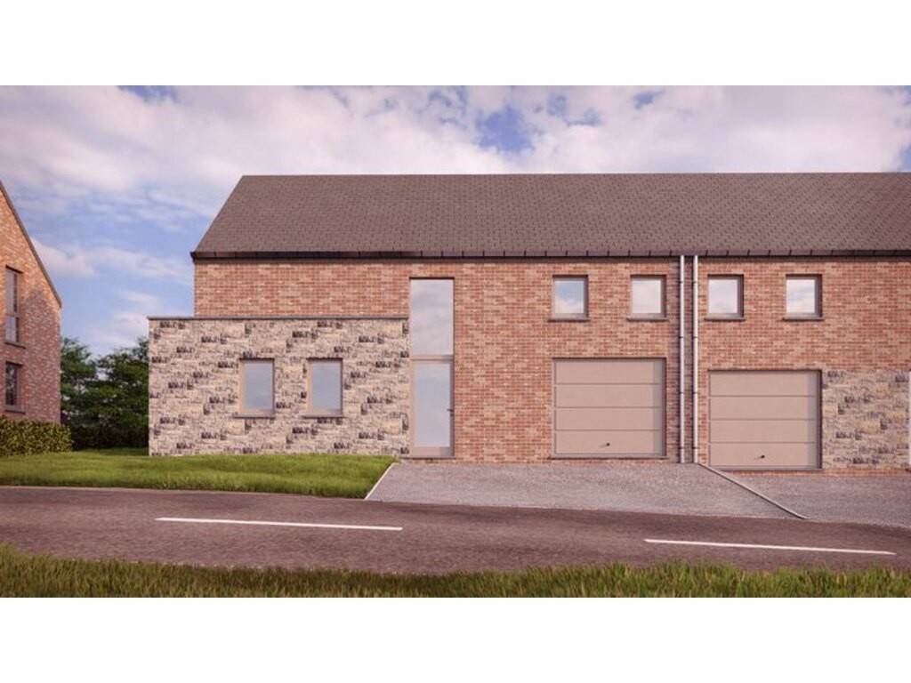 L’intérieur se compose d’un hall d’entrée avec WC, menant à un séjour lumineux de +/- 27 m², ouvert sur une cuisine de +/- 10 m². Un garage/buanderie de 1 voiture de +/- 20 m² complète le rez-de-chaussée.
