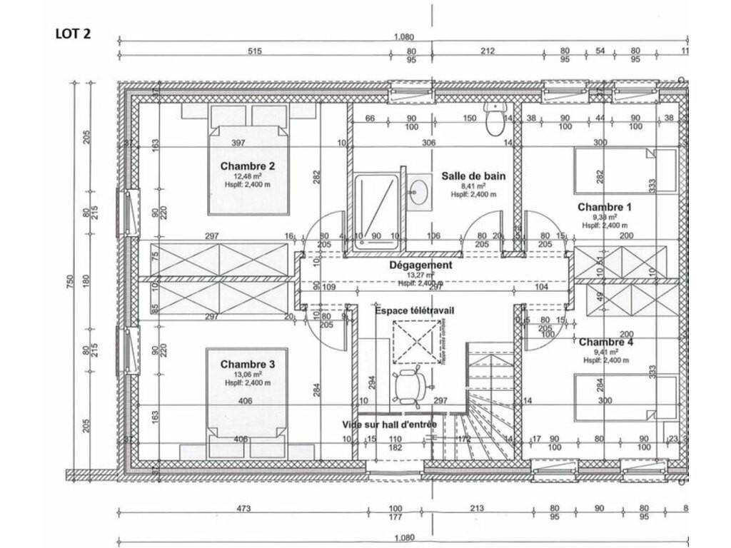 A l’étage, 4 chambres qui font respectivement +/- 13 m², +/- 12 m² et deux de +/- 10 m² ainsi qu'une salle de douche de +/- 8,5 m².
