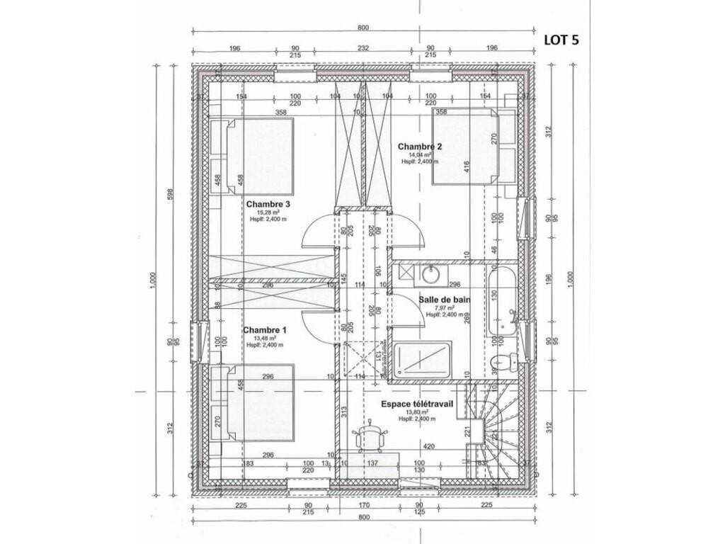A l’étage, 3 chambres de +/- 15,5 m², de +/- 14 et +/- 13,5 m² ainsi qu'une salle de bain de +/- 8 m².