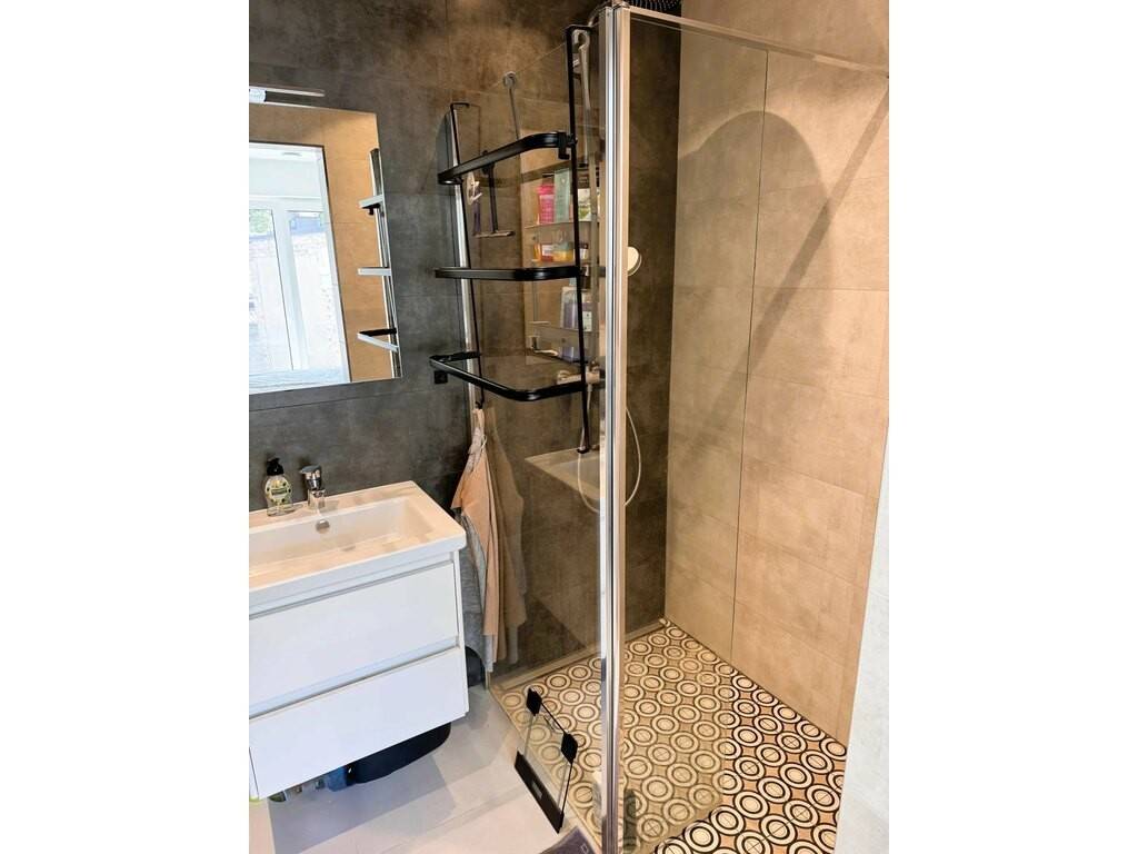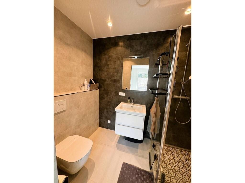 - a second bathroom of approximately 4 sqm, also fitted with a vanity unit, mirror, wall-hung toilet, and shower cabin.