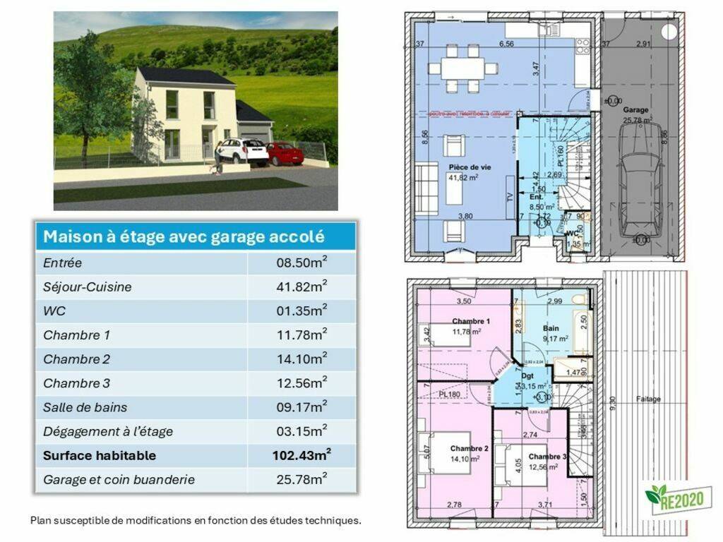 Maison à étage de 102m² habitables (plan personnalisable) NORME RE 2020