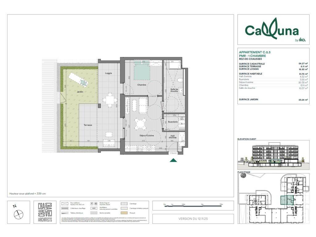 Au sein de la résidence Calluna, IKO REAL ESTATE vous propose cet appartement 1 chambre neuf de 54.27 m² habitables situé au rez-de-chaussée, comprenant un hall d'entrée, une buanderie, un séjour avec cuisine ouverte, une salle de douche avec wc, une loggia de 18.50 m², une terrasse de 8.11 m² donnant sur un jardin de 23.24 m².